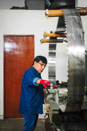 Tenemos buena experiencia en los servicios que nos brinda la empresa TECNIFOREST SRL respecto a la soldadura, afilado y estelitado de las hojas de sierra cinta.